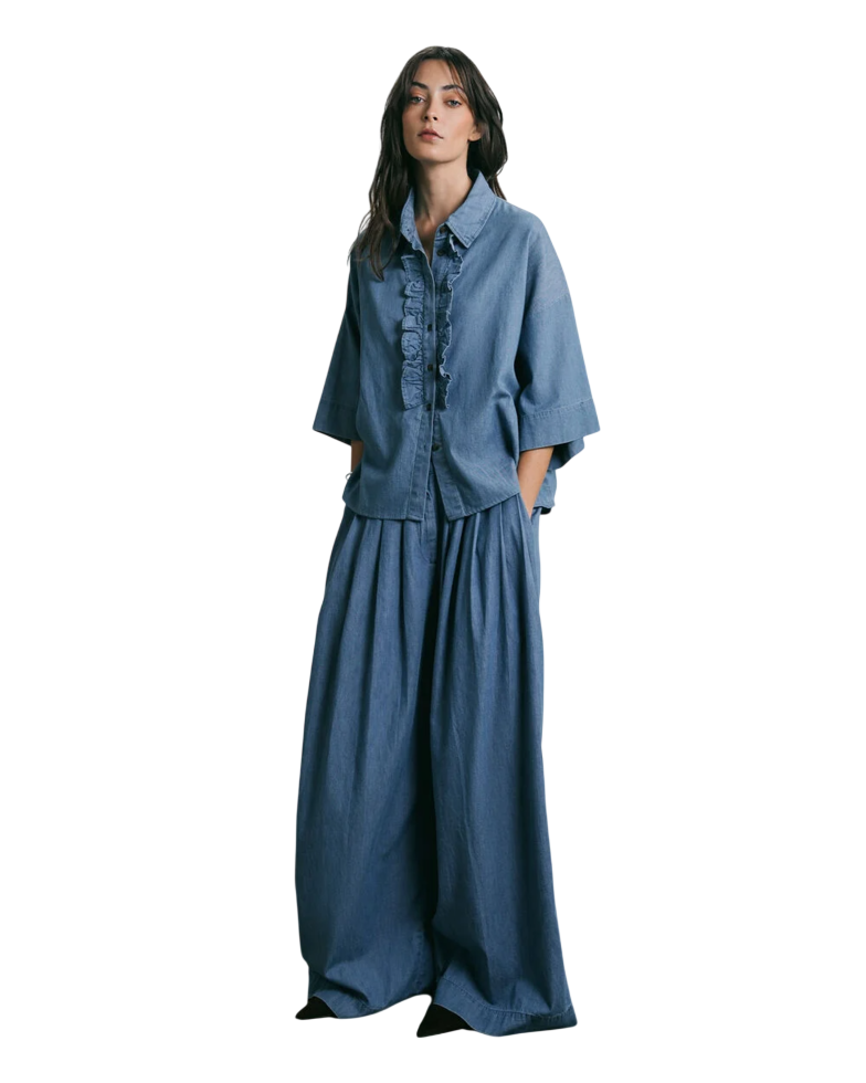 Although primarily apparel, our co-ord sets pair beautifully with premium footwear like Marni slides or luxury designer slides. The soft denim allows freedom of movement and all-day comfort, perfect for indoor and outdoor wear.